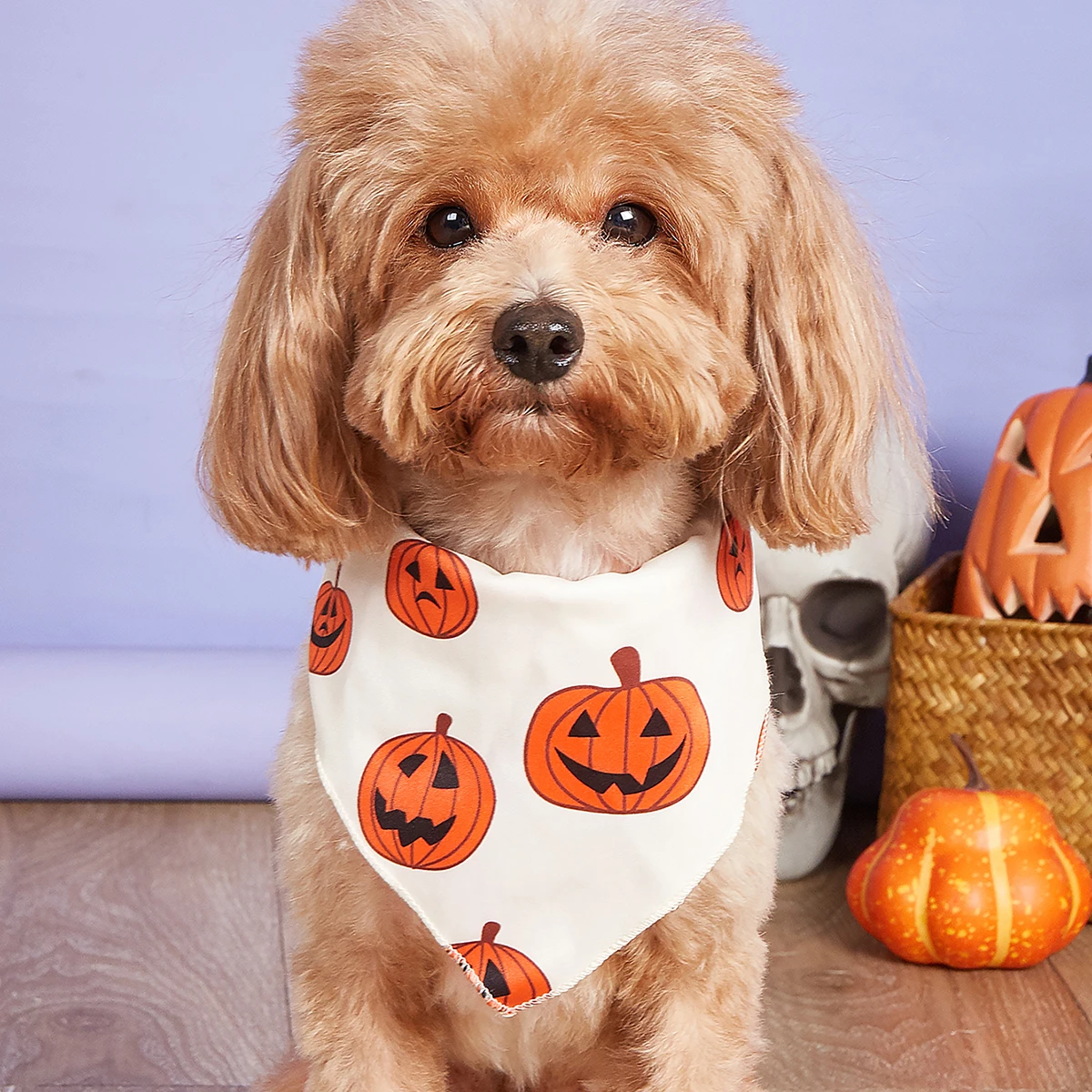 Halloween Dog Bandana, Pumpkin and Spider Web Bibs Triangle Pet Scarf, Multiple Sizes Soft & Adjustable Pet Bandanas Accessories
